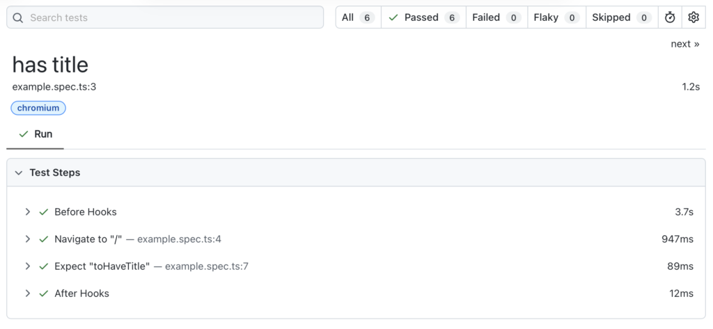 レポートの左上(example.spec.ts)には実行したテストのファイル名が表示されます。